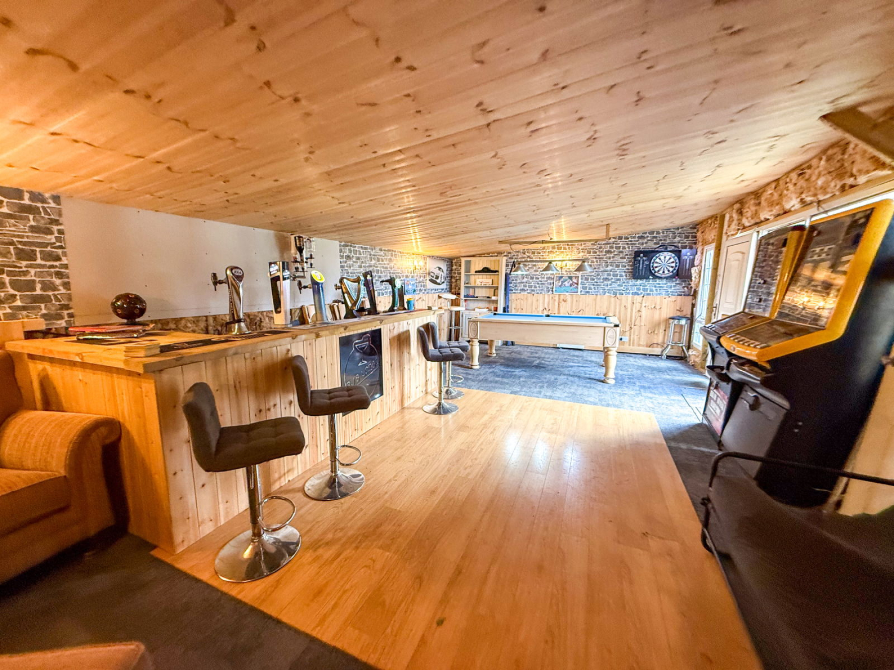 The impressive rear garden is predominantly south-facing, landscaped for ease of maintenance with a decked entertaining area, leading onto a generous lawn. At the top of the garden stands a versatile ‘Man Cave’ building (available subject to negotiations), perfect for hobbies or additional leisure space, complemented by a six-berth hot tub.