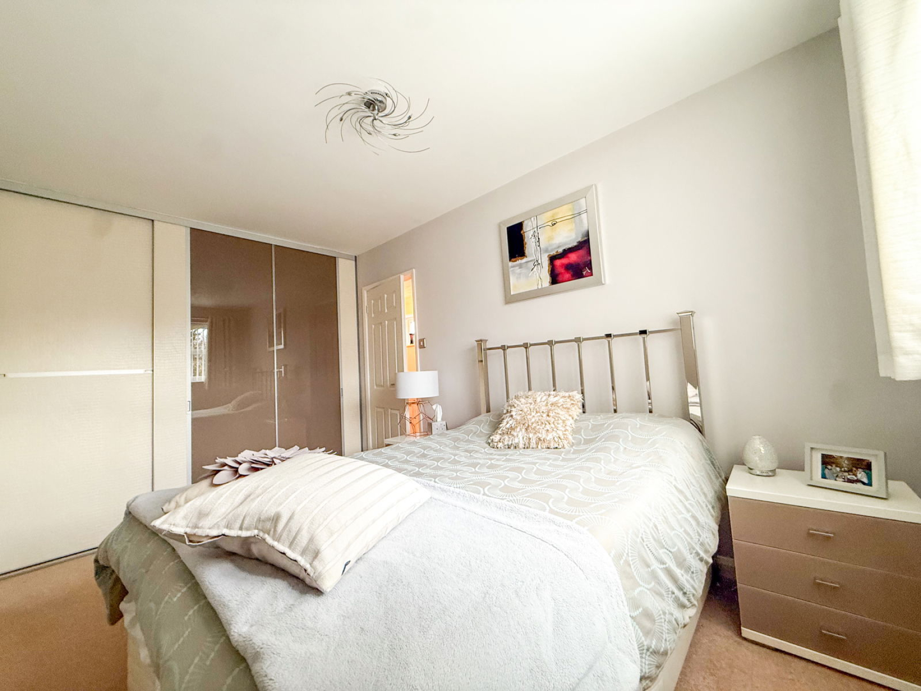 The rear garden is perfect for family living, featuring a block-paved patio that flows seamlessly into a spacious lawned area. Secured by wooden fencing and bordered with mature plants and shrubs, the garden offers privacy and tranquillity. A side passage provides convenient access from the garden to the front driveway.