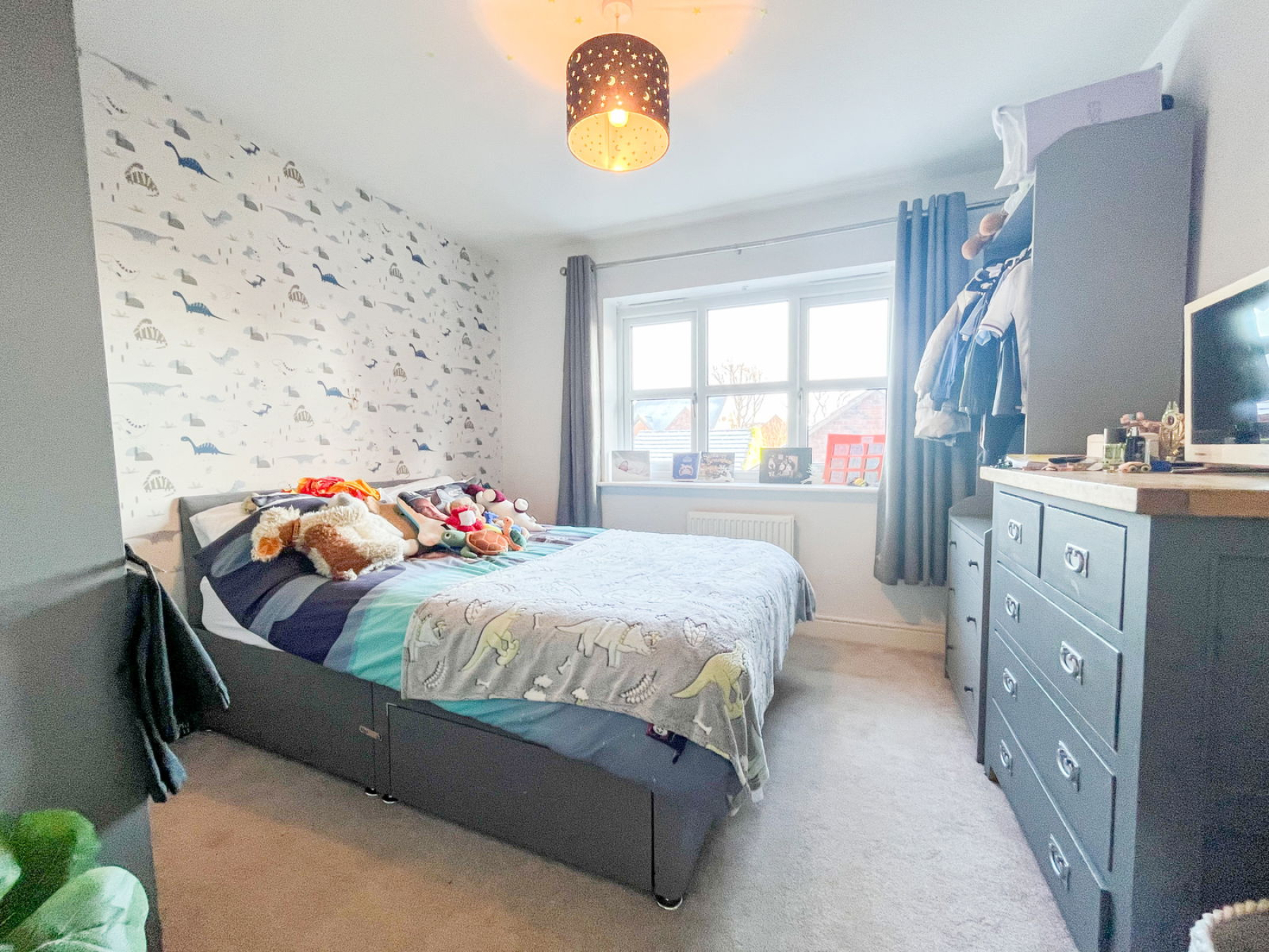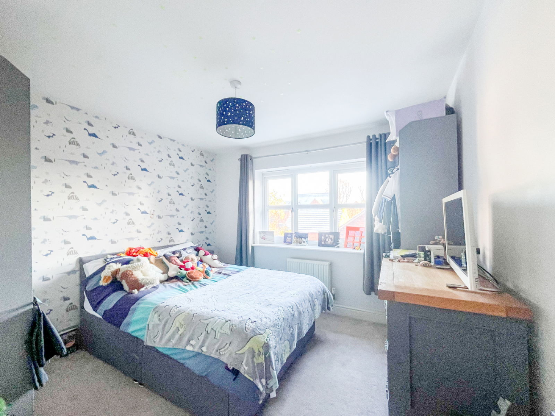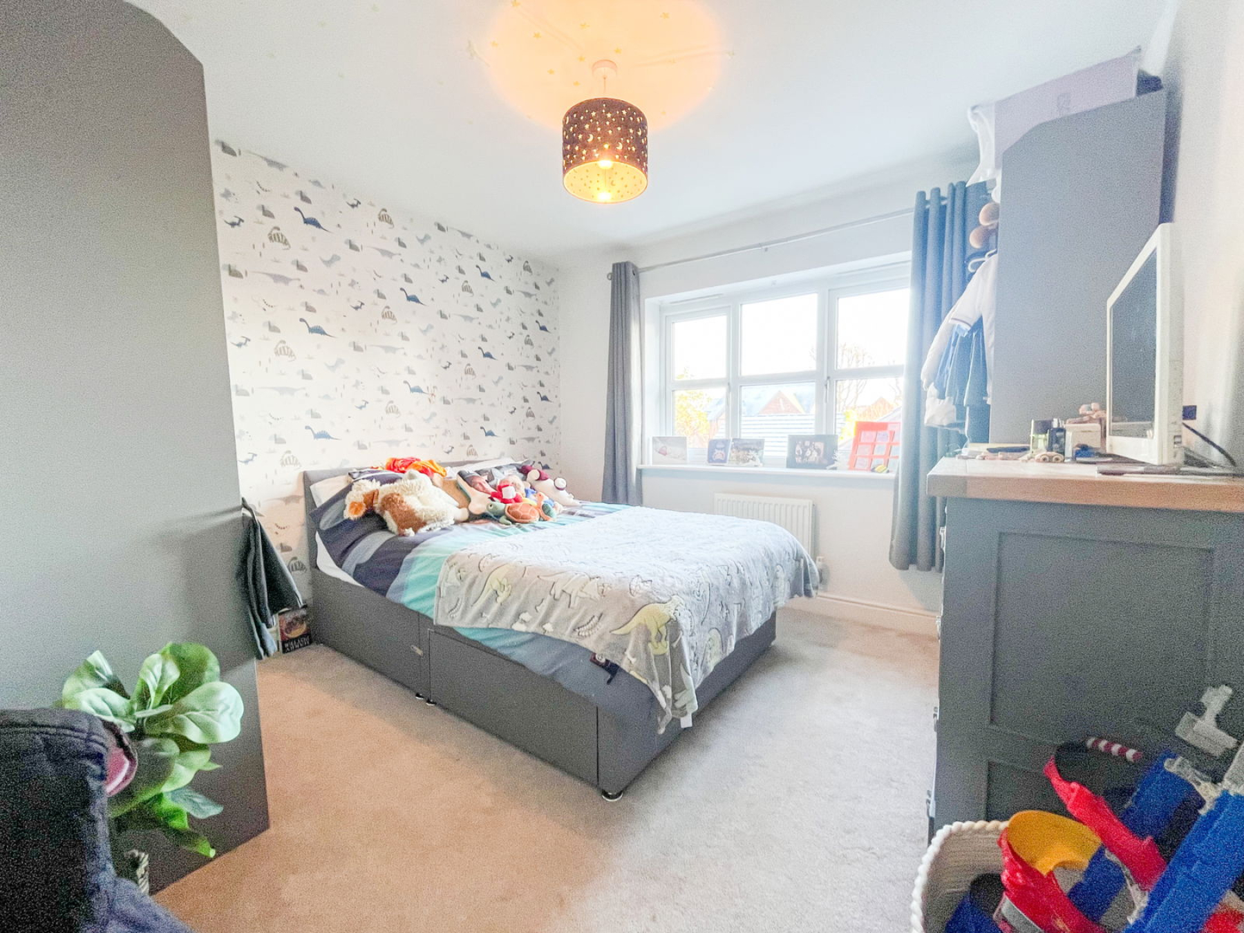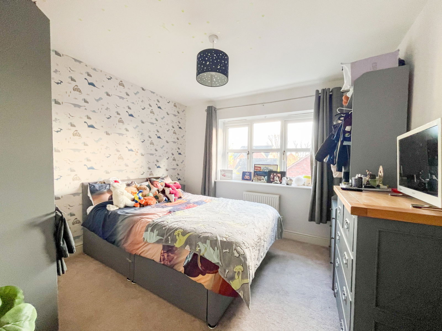 Bedrooms two and four both feature built-in wardrobes and rear aspect views, offering plenty of storage and tranquillity. The family bathroom continues the contemporary theme with a white suite, a large walk-in shower, and stylish ceramic flooring and wall tiles.