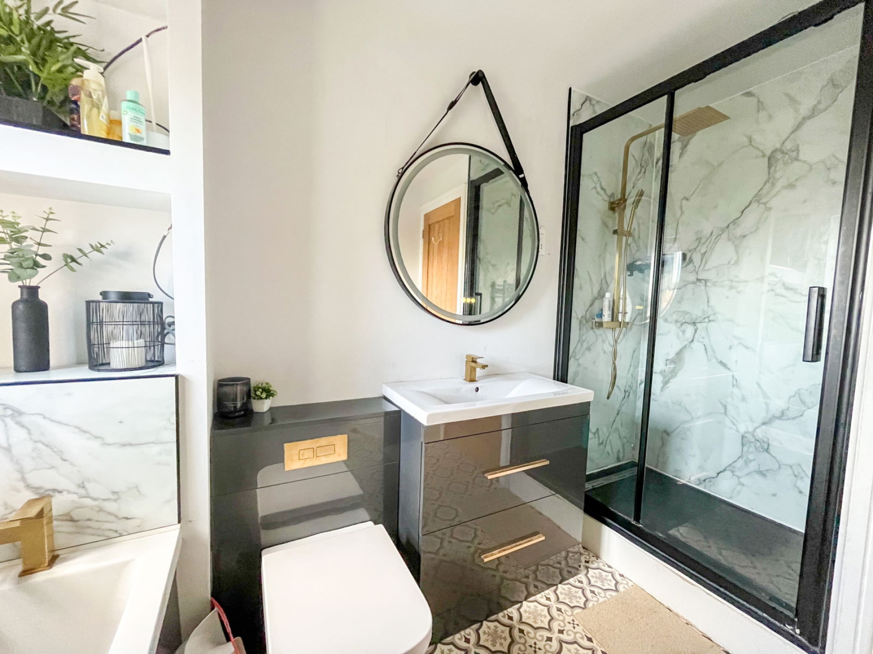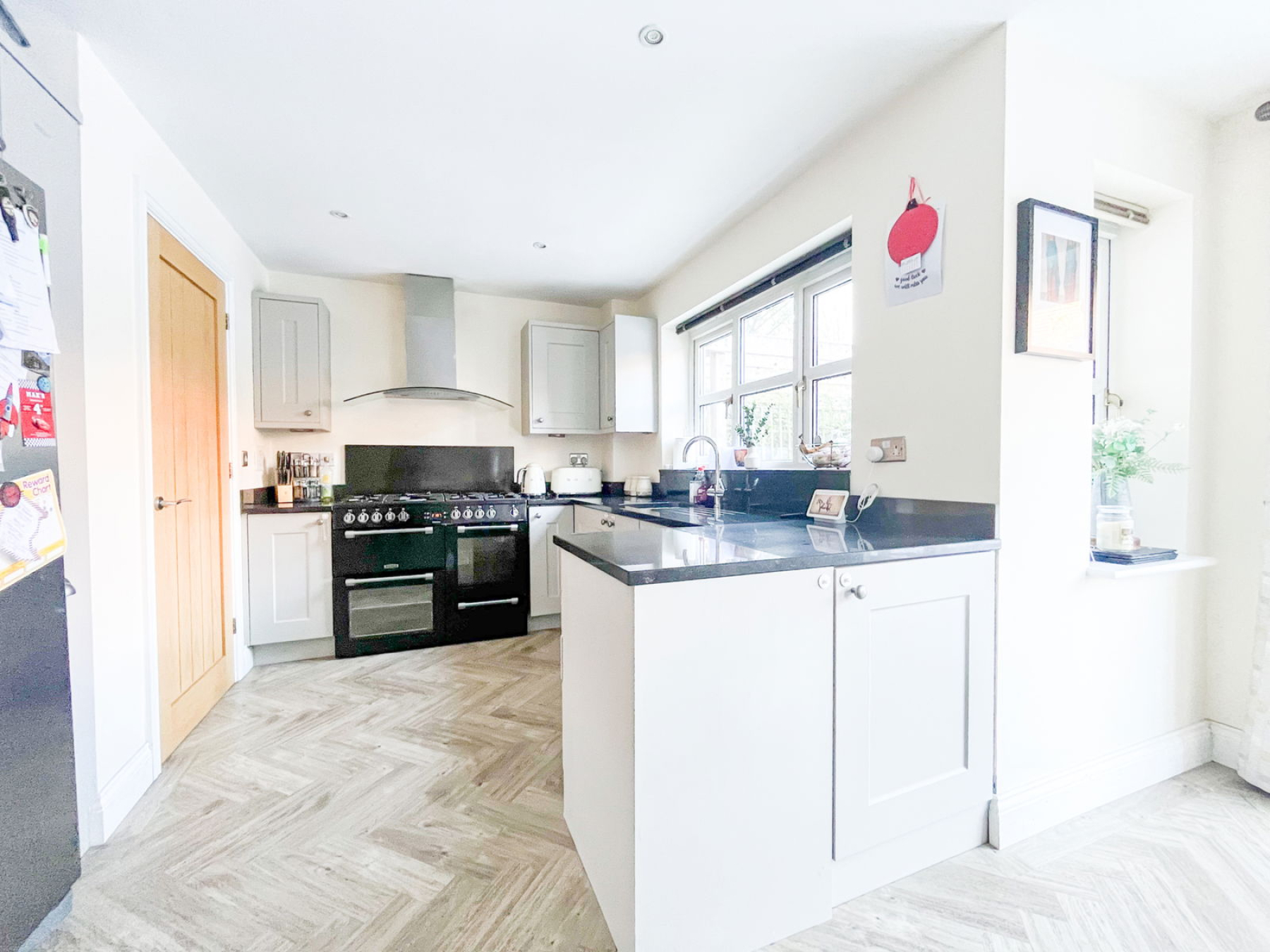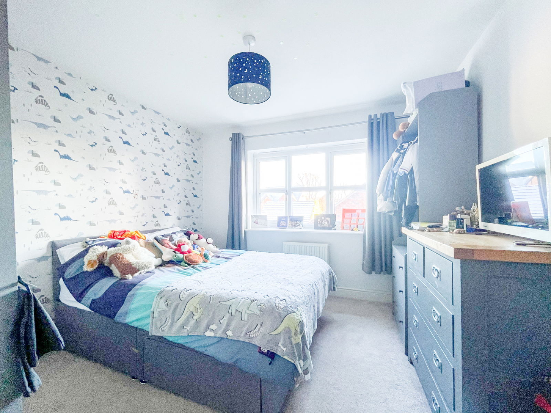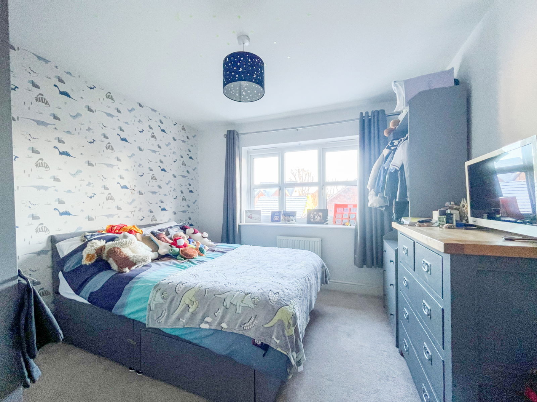 Bedrooms two and four both feature built-in wardrobes and rear aspect views, offering plenty of storage and tranquillity. The family bathroom continues the contemporary theme with a white suite, a large walk-in shower, and stylish ceramic flooring and wall tiles.