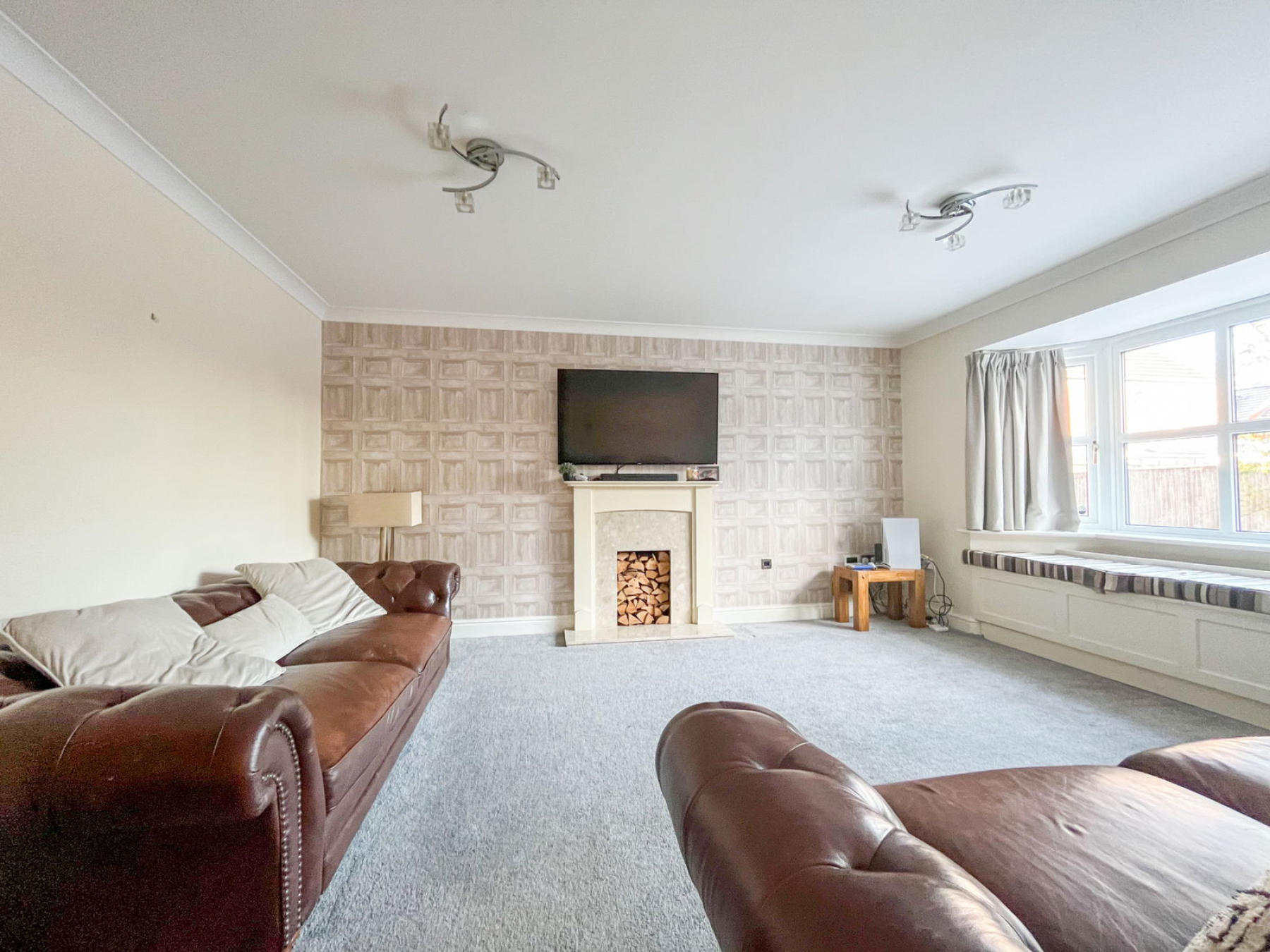 To the front, the property offers ample parking for 4-6 vehicles on a spacious driveway, with additional parking available in front of the double garage. The front side gardens provide access to the rear garden and side of the garage, enhancing the property's curb appeal and practicality.