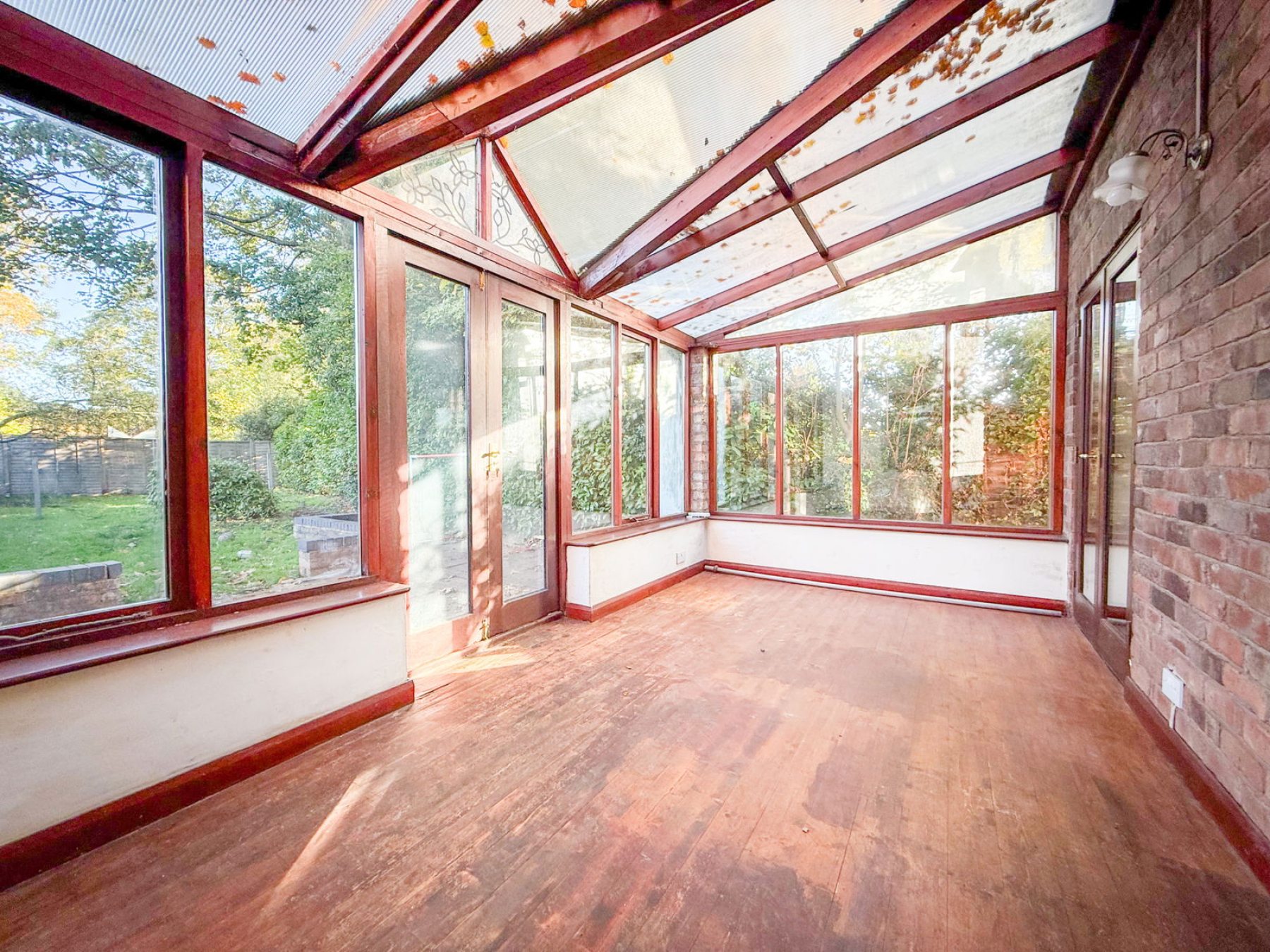 The large sunroom, spanning the full width of the property, is accessed from reception 2 and the kitchen via two sets of French doors, providing seamless indoor-outdoor living. This bright, airy space offers direct access to the rear garden and patio, making it an ideal spot for relaxing or entertaining guests.